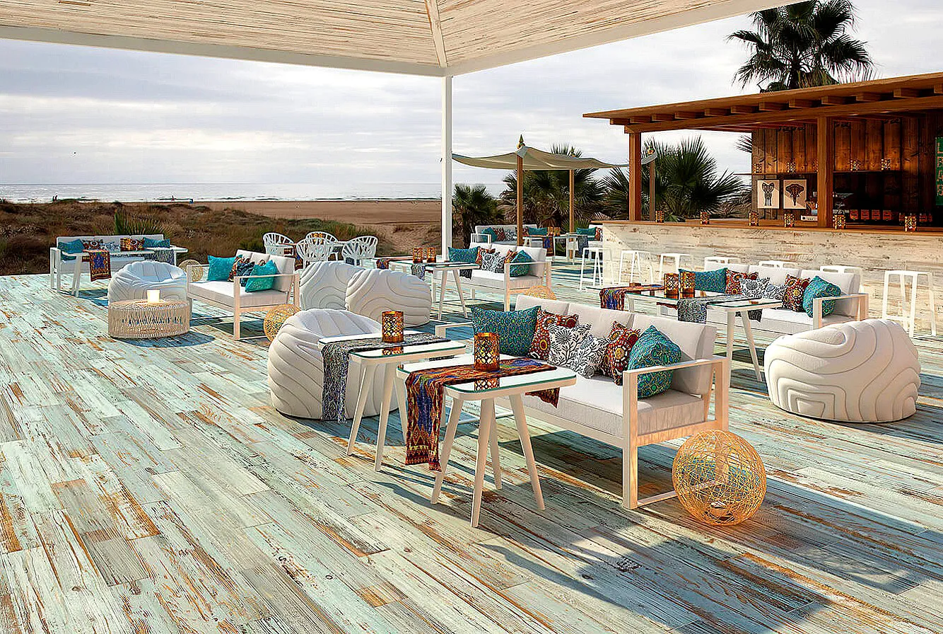 Испанский, натуральный керамогранит Tribeca Aqua 20,2*66,2 в форме паркетной доски,