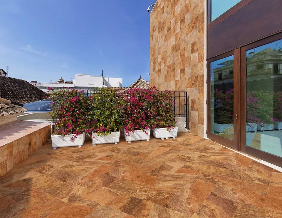 размера 45x45, песочного цвета. Данный вид керамогранита, имитирующий камень,