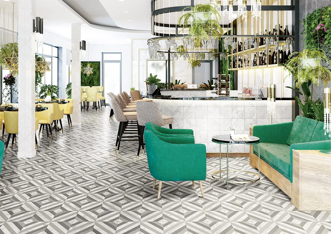 размера 20x20, белого цвета. Данный вид керамогранита, имитирующий камень,