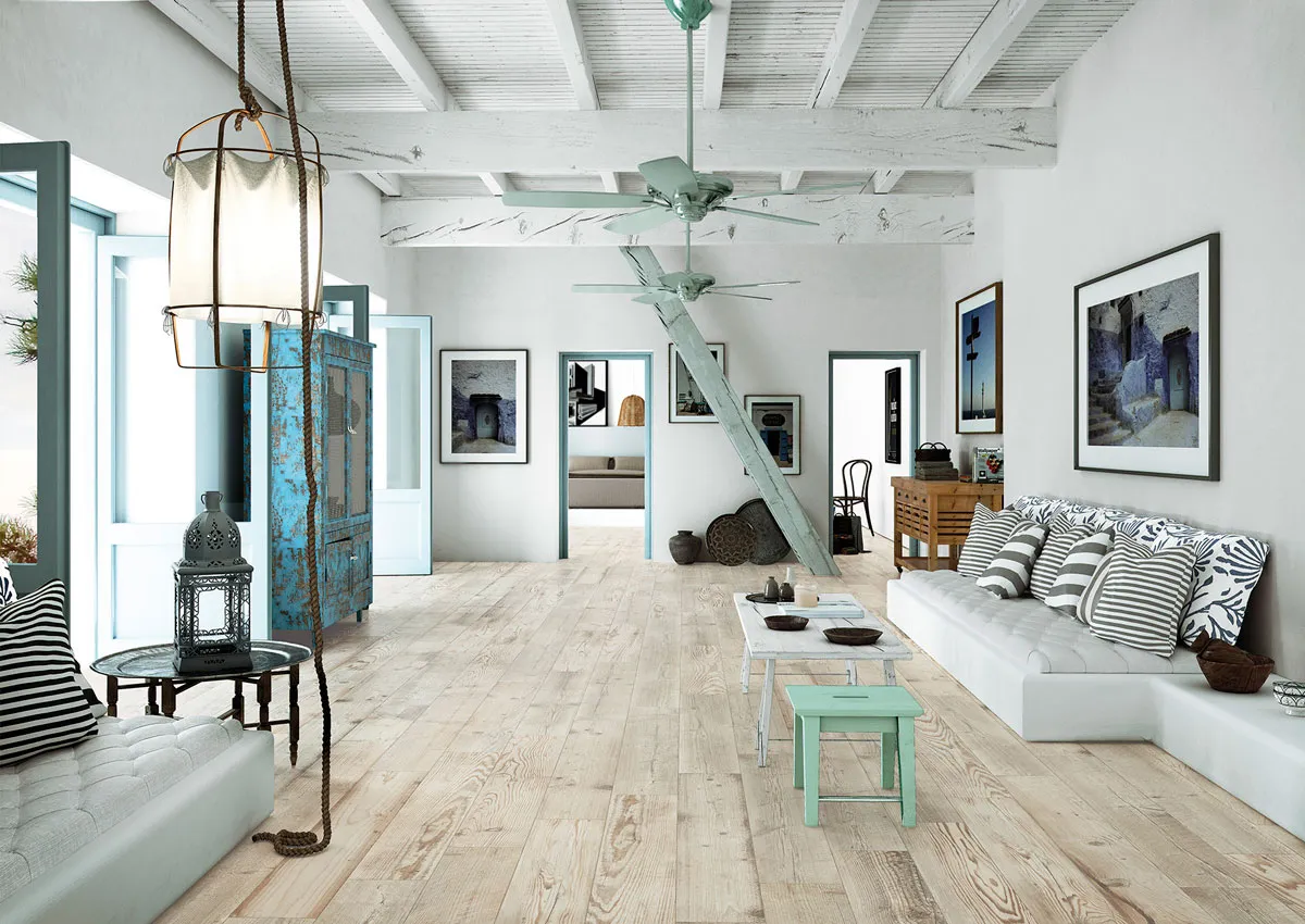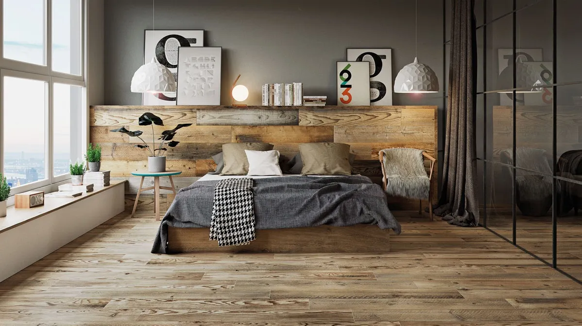 Испанский, натуральный керамогранит Village Gris 15x90 в форме паркетной доски,