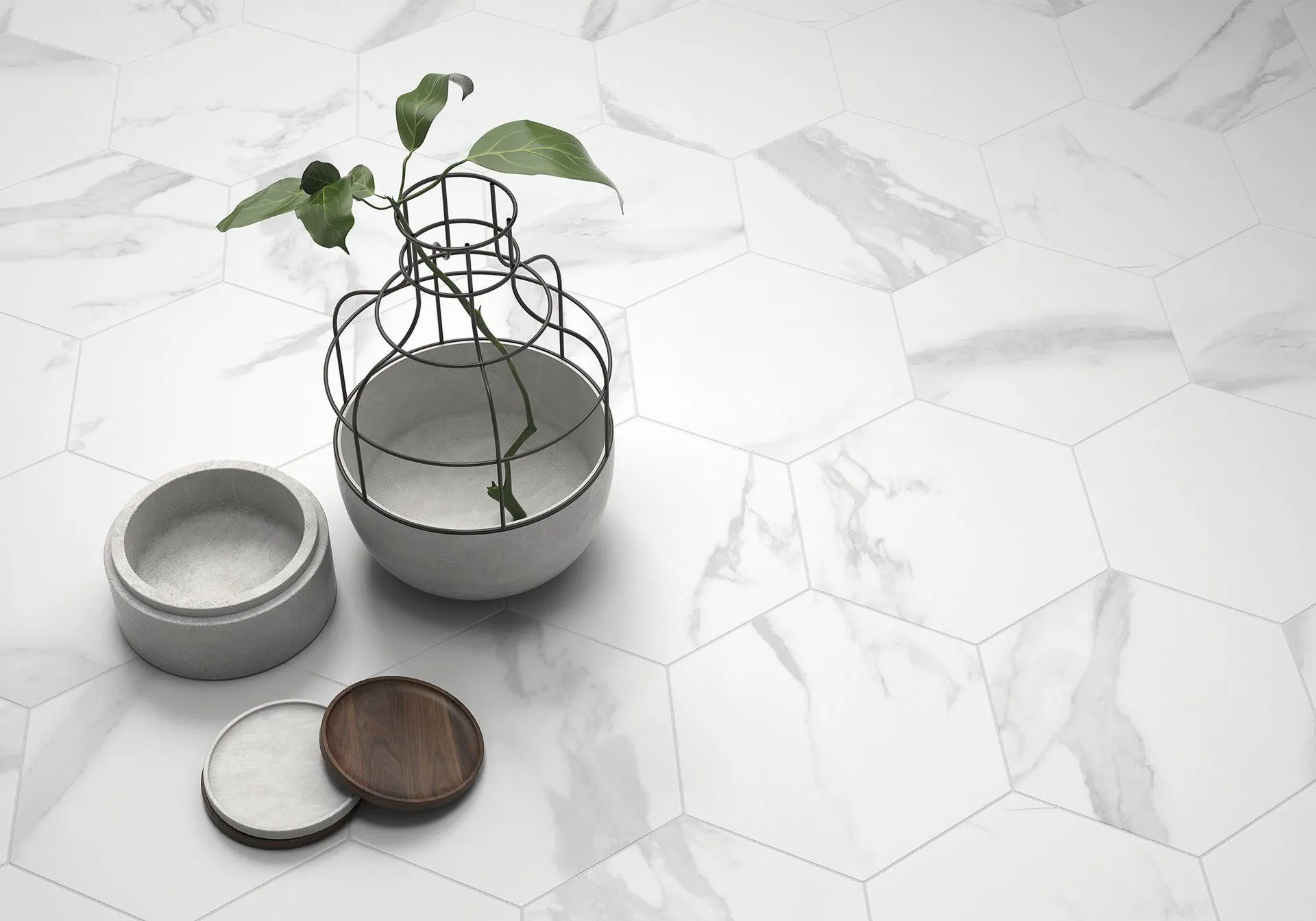 Испанский, натуральный керамогранит White Soul Hexa Matt 23х27 шестигранной формы,
