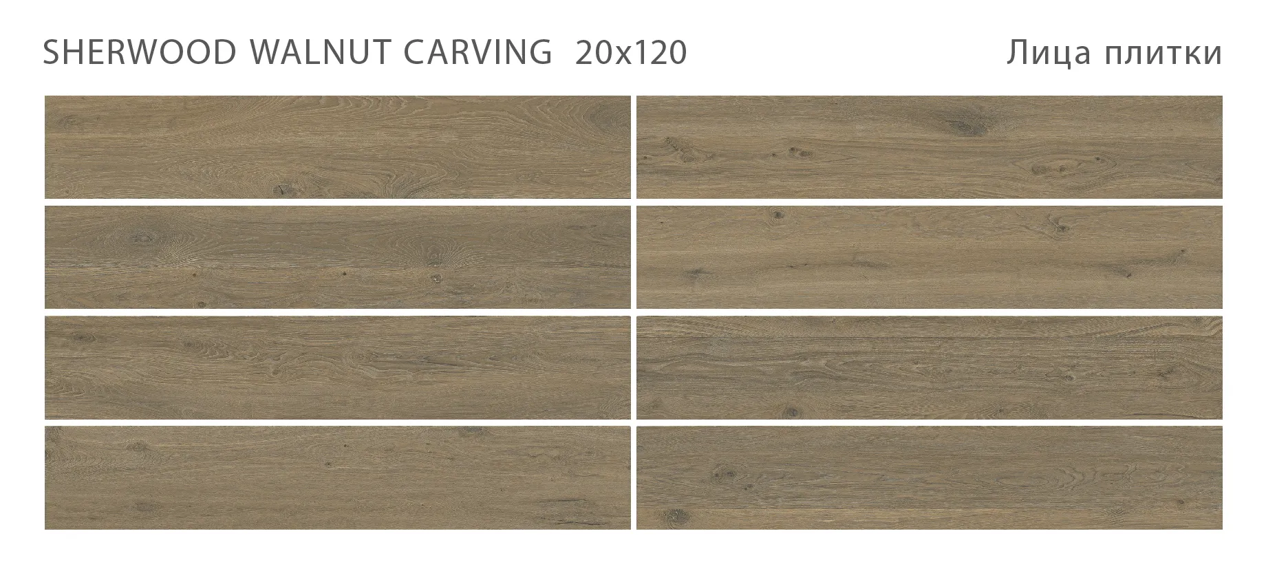 Плитка STAROWOOD Sherwood Walnut 20x120 Carving м2