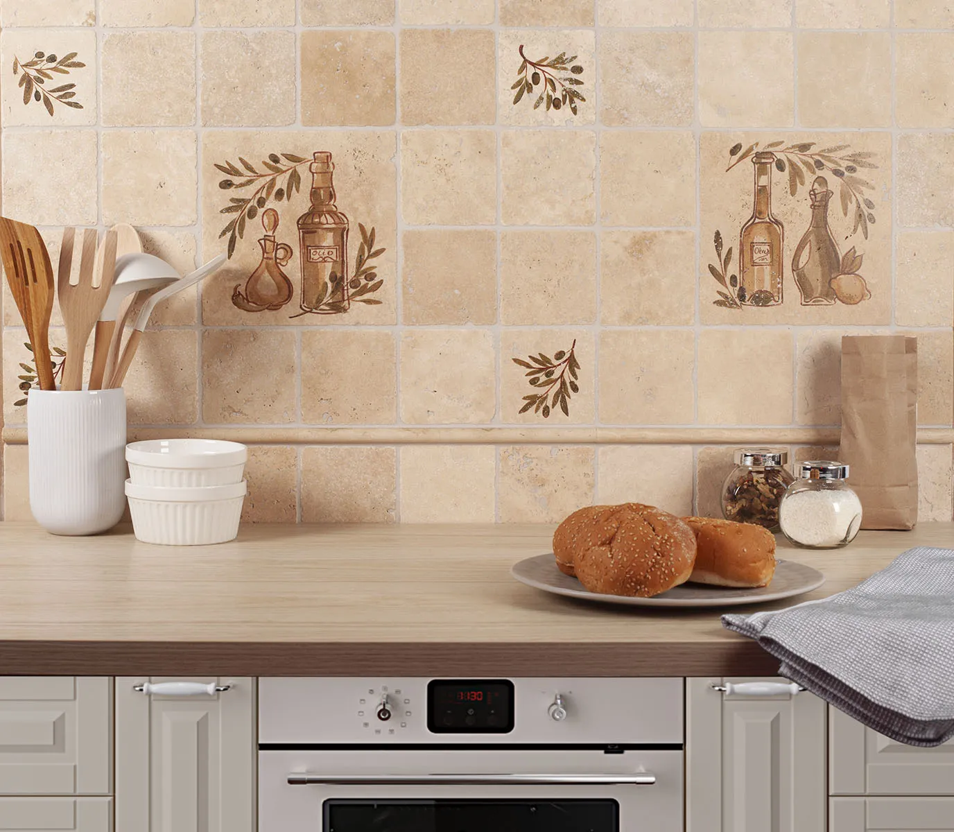 Плитка Provance изготавливается из натурального природного камня – травертина, который по своим характеристикам прочности и долговечности находится между известняком и мрамором. Древние мастера использовали этот камень для возведения легендарного Колизея, а современные строители считают его одним из лучших отделочных материалов для оформления фасадов зданий и создания интерьерных решений. Причина тому – великолепный внешний вид, простота в обработке и не слишком высокая цена плитки из травертина. Плитка может использоваться при укладке на стены или пол, хорошо подойдет для стиля Прованс, кухонных фартуков, душевых поддонов, стен ванной комнаты или столешниц. Допускается различие по тональности, которое является особенностью натурального камня. После укладки материала, рекомендуется обработать водоотталкивающей пропиткой для натурального камня.
