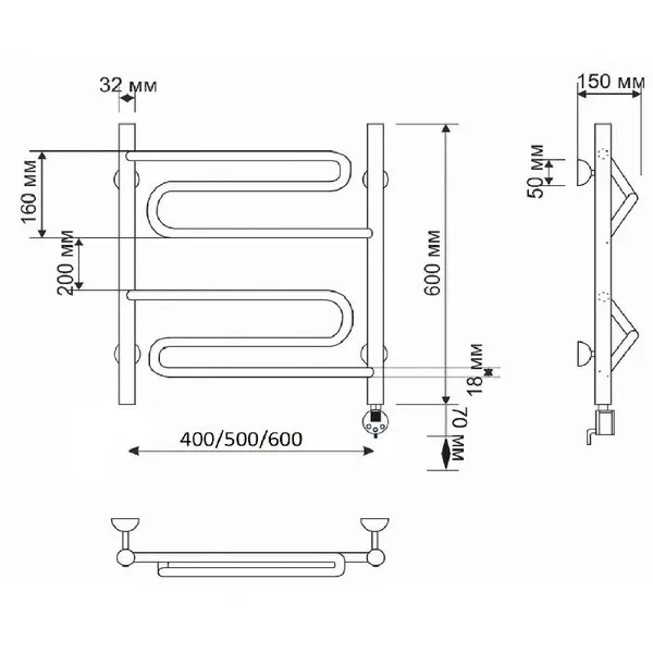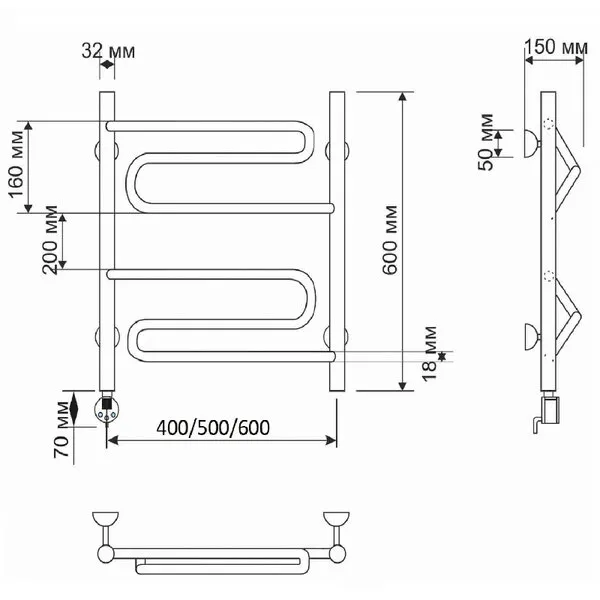 Электрический полотенцесушитель имеет выключатель на корпусе, встроенный терморегулятор, функцию отключения при нагреве для эконимии энергии.