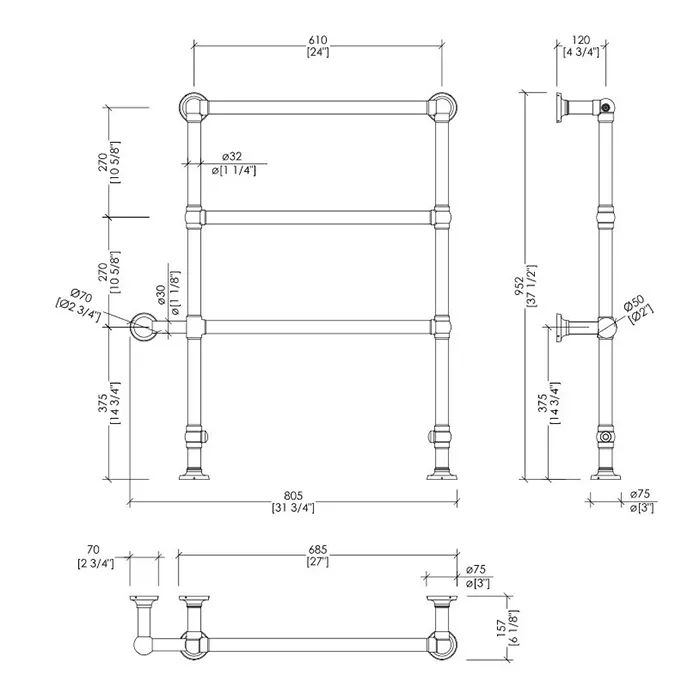Полотенцесушитель электрический Devon&Devon Baccus 805х952x157 мм. подвод электричества слева светлое золото PRB4ELSX/CF