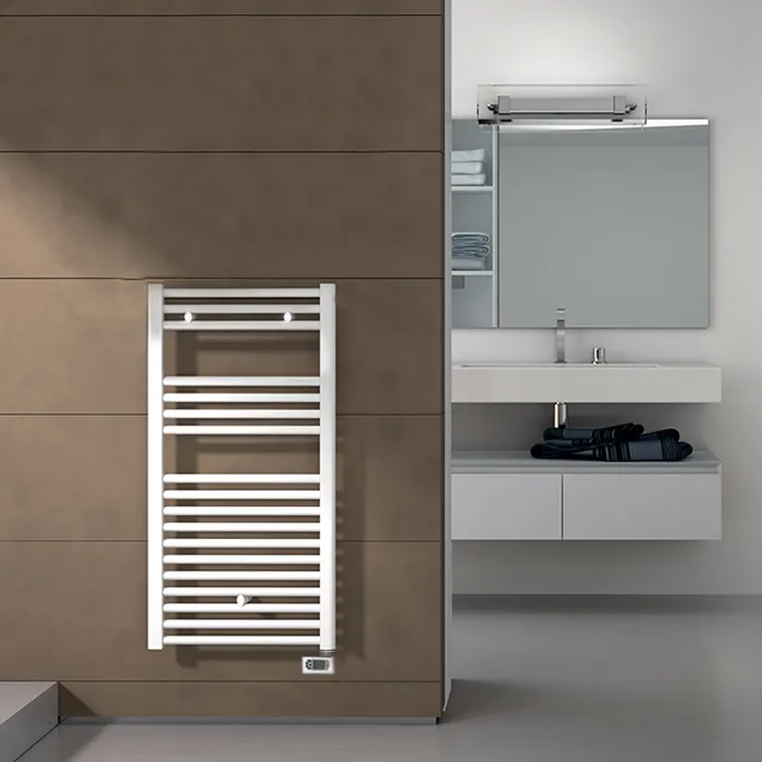 Полотенцесушитель электрический Irsap Ares 580x818x30мм, 15 трубок-2 пром, мощность 400 ватт, с электр/термостатом белым, провод 1200мм, белый EIS058H01IR01NNN01