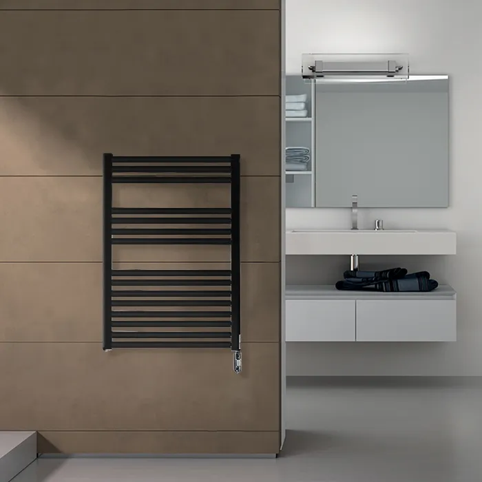 Полотенцесушитель электрический Irsap Ares 580x818x30мм, 15 трубок-2 промежутка, мощность 400 ватт, с выкл хром, провод 1200мм, черный матовый EIS058IK1IR01NNN01