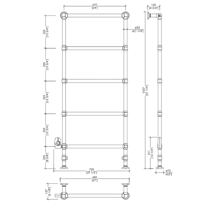 Полотенцесушитель электрический напольный Devon&Devon Baccus 75х15.7хh155.7 хром термостат, ХРОМ - смонтирован слева SX PRB7CRELSX/CR