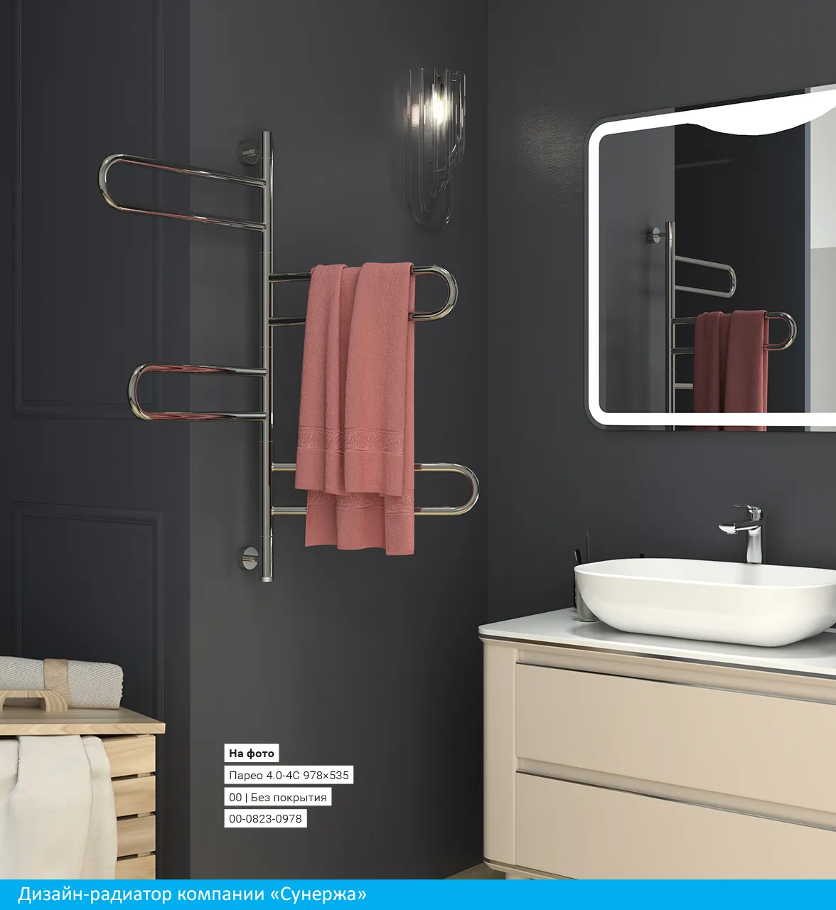 Полотенцесушитель электрический Сунержа Парео 4.0-4С 978х535 30-0823-0978 матовый белый