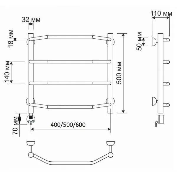 Электрический полотенцесушитель имеет выключатель на корпусе, встроенный терморегулятор, функцию отключения при нагреве для экономии энергии.