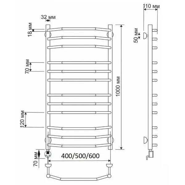 Электрический полотенцесушитель имеет выключатель на корпусе, встроенный терморегулятор, функцию отключения при нагреве для экономии энергии.