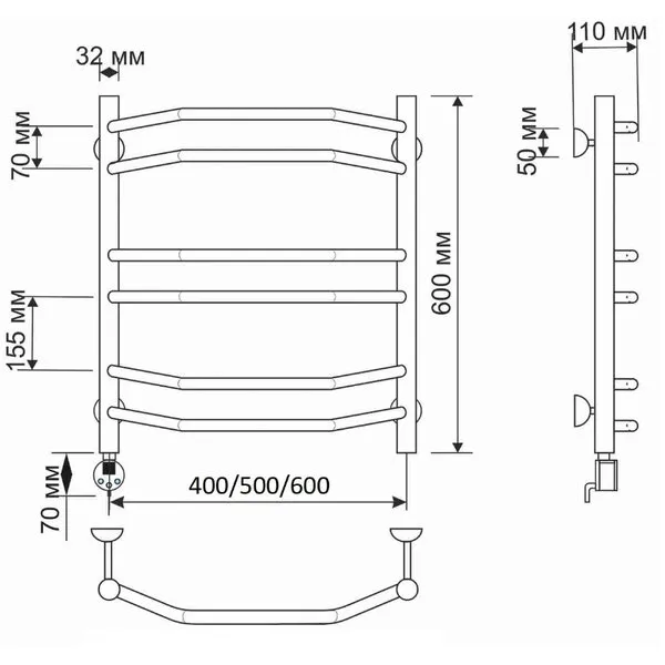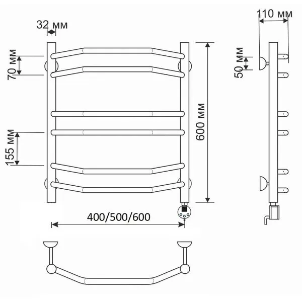 Электрический полотенцесушитель имеет выключатель на корпусе, встроенный терморегулятор, функцию отключения при нагреве для экономии энергии.