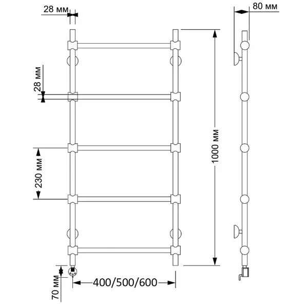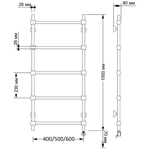 Электрический полотенцесушитель имеет выключатель на корпусе, встроенный терморегулятор, функцию отключения при нагреве для экономии энергии.