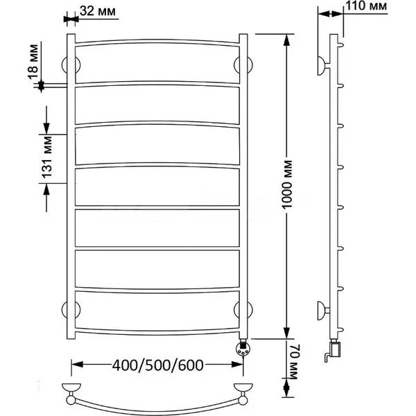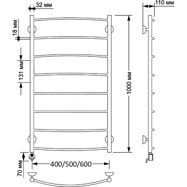 Электрический полотенцесушитель имеет выключатель на корпусе, встроенный терморегулятор, функцию отключения при нагреве для экономии энергии.