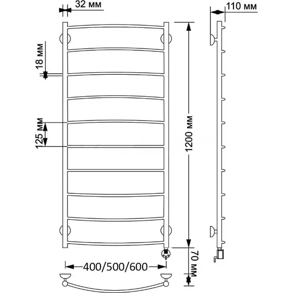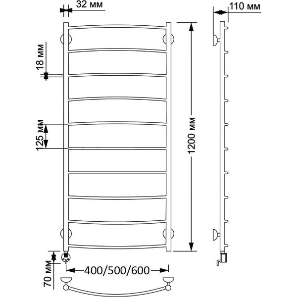 Электрический полотенцесушитель имеет выключатель на корпусе, встроенный терморегулятор, функцию отключения при нагреве для экономии энергии.