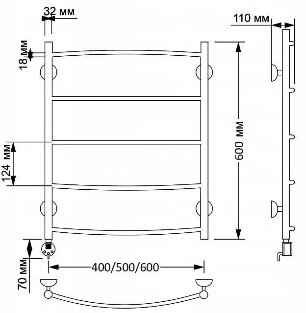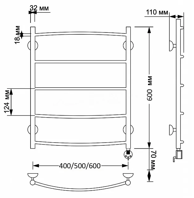Электрический полотенцесушитель имеет выключатель на корпусе, встроенный терморегулятор, функцию отключения при нагреве для экономии энергии.