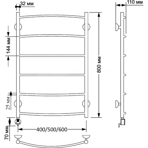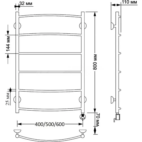 Электрический полотенцесушитель имеет выключатель на корпусе, встроенный терморегулятор, функцию отключения при нагреве для экономии энергии.