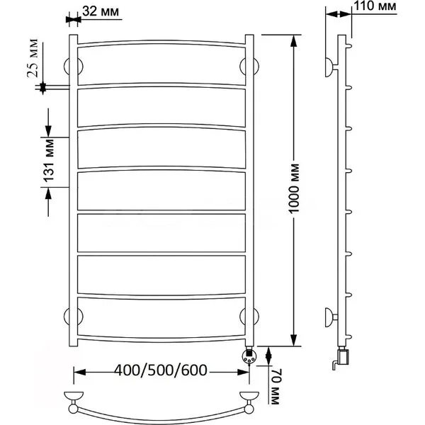 Электрический полотенцесушитель имеет выключатель на корпусе, встроенный терморегулятор, функцию отключения при нагреве для экономии энергии.