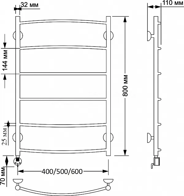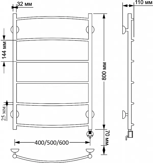 Электрический полотенцесушитель имеет выключатель на корпусе, встроенный терморегулятор, функцию отключения при нагреве для экономии энергии.
