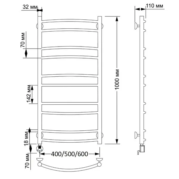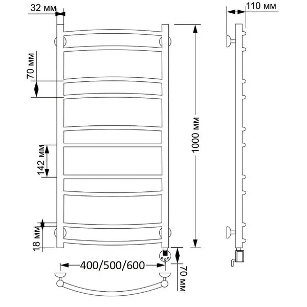 Электрический полотенцесушитель имеет выключатель на корпусе, встроенный терморегулятор, функцию отключения при нагреве для экономии энергии.