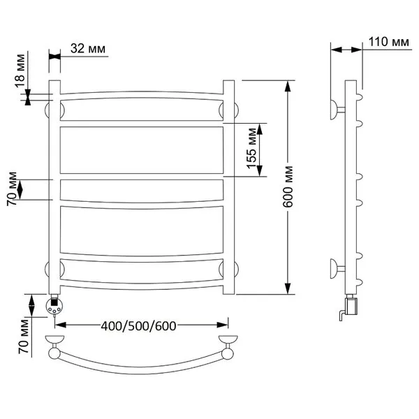 Электрический полотенцесушитель имеет выключатель на корпусе, встроенный терморегулятор, функцию отключения при нагреве для экономии энергии.