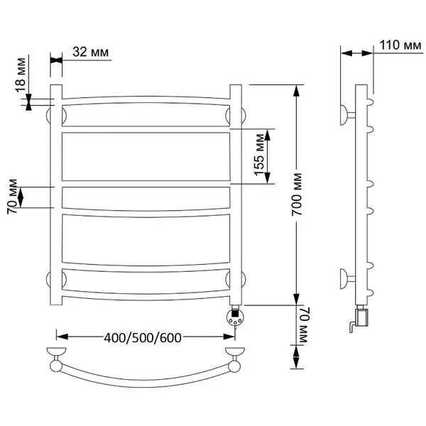 Электрический полотенцесушитель имеет выключатель на корпусе, встроенный терморегулятор, функцию отключения при нагреве для экономии энергии.