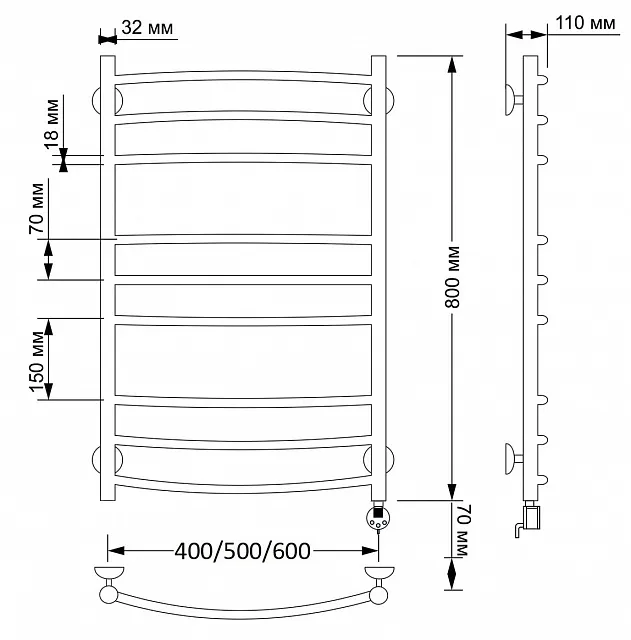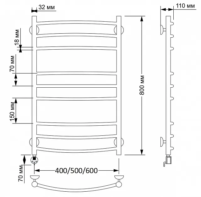 Электрический полотенцесушитель имеет выключатель на корпусе, встроенный терморегулятор, функцию отключения при нагреве для экономии энергии.