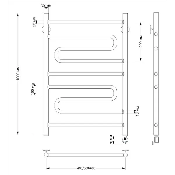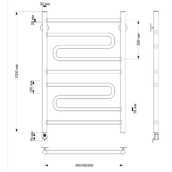 Электрический полотенцесушитель имеет выключатель на корпусе, встроенный терморегулятор, функцию отключения при нагреве для экономии энергии.