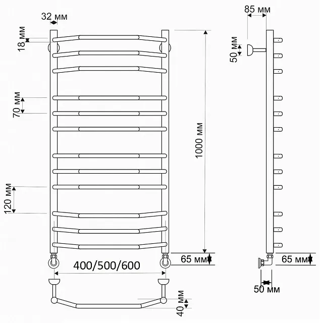 Водяной полотенцесушитель подключается к системе горячего водоснабжения, к системе центрального отопления, к закрытой системе отопления.