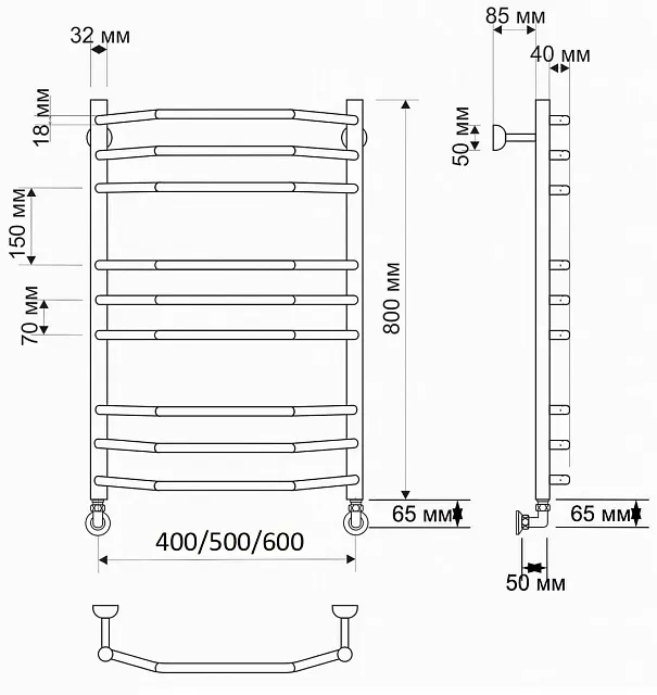 Водяной полотенцесушитель подключается к системе горячего водоснабжения, к системе центрального отопления, к закрытой системе отопления.