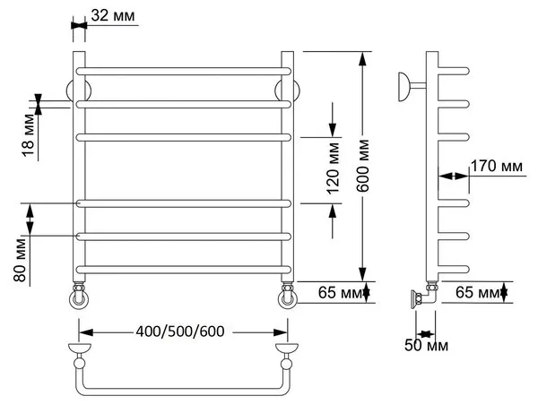 Водяной полотенцесушитель подключается к системе горячего водоснабжения, к системе центрального отопления, к закрытой системе отопления.