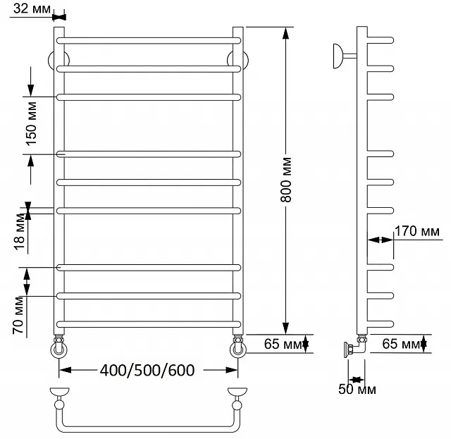 Водяной полотенцесушитель подключается к системе горячего водоснабжения, к системе центрального отопления, к закрытой системе отопления.