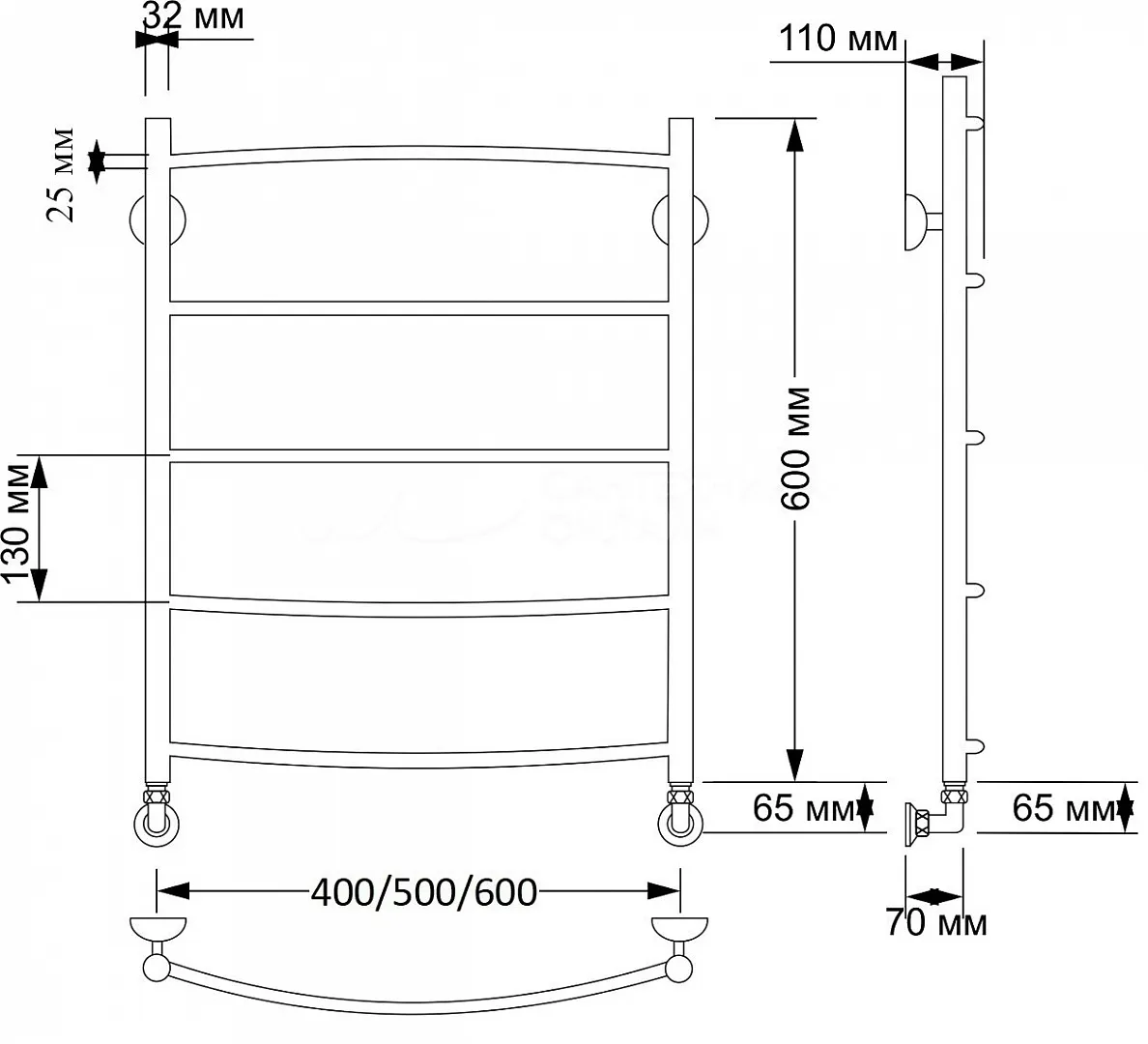 Водяной полотенцесушитель подключается к системе горячего водоснабжения, к системе центрального отопления, к закрытой системе отопления.