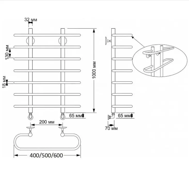 Водяной полотенцесушитель подключается к системе горячего водоснабжения, к системе центрального отопления, к закрытой системе отопления.