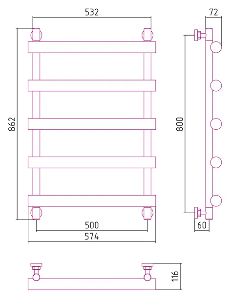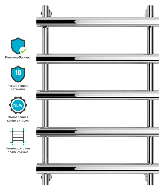 Компания «Сунержа» всегда определяла надежность как основной принцип при производстве полотенцесушителей и дизайн-радиаторов. Полотенцесушители изготовлены из высококачественной пищевой нержавеющей стали AISI 304 L, функционируют при любом качестве воды и в любой системе ГВС. Обычно, сталь подвержена электрохимической коррозии. Причина коррозии в системе водоснабжения — эффект блуждающих токов. Это явление техногенное и вызвано ошибками при подключении электрических приборов в квартирах или повреждением изоляции на электропроводящих кабельных линиях дома. В результате приходится менять изделие, что, в свою очередь, ведет к финансовым затратам. Зная об этой проблеме, «Сунержа» разработала и внедрила технологию защиты дизайн-радиатора «ПолимерПротект». В основе технологии используется уникальный полимер, который устраняет контакт теплоносителя с металлом. При этом полимер абсолютно не токсичен, устойчив к высоким температурам и долговечен. В результате внедрения технологии была увеличена гарантия на полотенцесушители до 10 лет. Межосевое расстояние: - нижнее подключение X (мм) 500 - диагональное подключение Y (мм) 800 - вертикальное подключение Y (мм) 800 Внешние габариты (высота х ширина х глубина) (мм) 862 х 574 х 116 Материал Нержавеющая сталь AISI 304 L (04X18H10) Площадь помещения (м2) 3.5 Объем помещения (м3) 8.8 Теплоотдача (Qвт) 351 Рабочее давление от 3 до 25 атм Давление испытаний 60 атм Температура теплоносителя до 105°С Масса (кг) 9.58 Объем (м3) 0.042