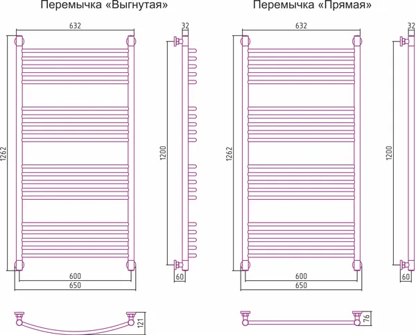 Межосевое расстояние: - нижнее подключение X (мм) 600 - диагональное подключение Y (мм) 1200 - вертикальное подключение Y (мм) 1200 Внешние габариты (высота х ширина х глубина) (мм) 1262х650x76 Подключение Универсальное Материал Нержавеющая сталь AISI 304 L (04X18H10) Площадь помещения (м2) 8.4 Объем помещения (м3) 20.9 Теплоотдача (Qвт) 834 Рабочее давление от 3 до 15 атм Давление испытаний 60 атм Температура теплоносителя до 105°С Масса (кг) 12 Объем (м3) 0.044