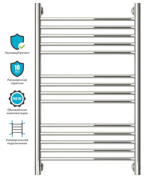 Межосевое расстояние: - нижнее подключение X (мм) 500 - диагональное подключение Y (мм) 800 - вертикальное подключение Y (мм) 800 Внешние габариты (высота х ширина х глубина) (мм) 862х550x76 Подключение Универсальное Материал Нержавеющая сталь AISI 304 L (04X18H10) Площадь помещения (м2) 5 Объем помещения (м3) 12.5 Теплоотдача (Qвт) 497 Рабочее давление от 3 до 15 атм Давление испытаний 60 атм Температура теплоносителя до 105°С Масса (кг) 7.60 Объем (м3) 0.021