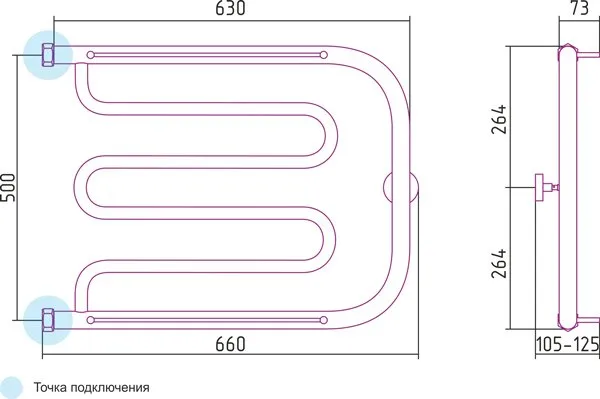 Межосевое расстояние: Межосевое расстояние Y (мм) 500 Внешние габариты (высота х ширина х глубина)(мм) 536x660x105-125 Внешние габариты c переходными угловыми элементами (мм) 550x717-723x105-125 Материал Нержавеющая сталь AISI 304 L (04X18H10) Объем помещения (м3) 6.5 Площадь помещения (м2) 2.61 Теплоотдача (Qвт) 261 Рабочее давление от 3 до 25 атм Давление испытаний 60 атм Температура теплоносителя до 105°С Масса (кг) 3.98 Объем (м3) 0.034