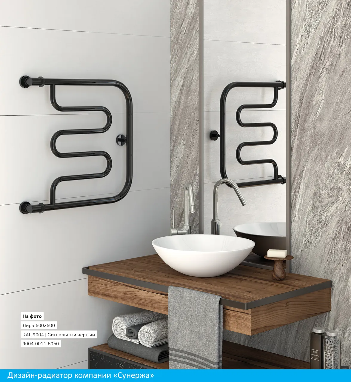 Полотенцесушитель водяной Сунержа Лира 500х500 31-0011-5050 матовый черный