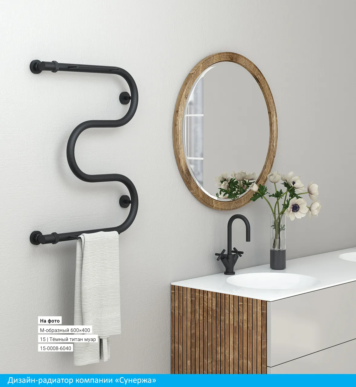 Полотенцесушитель водяной Сунержа М-образный 600х600 31-0007-6060 матовый черный
