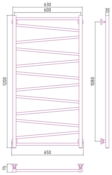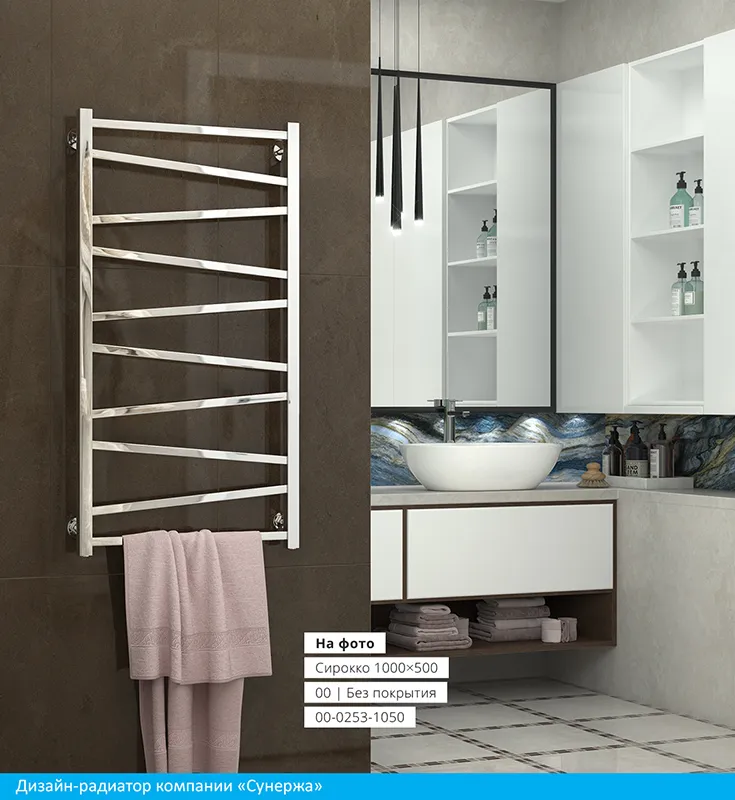 Водяной полотенцесушитель Сирокко 1200х600 Сунержа, 00-0253-1260, ХРОМ (без покрытия). Межосевое расстояние: - нижнее подключение X (мм) 600; Внешние габариты (высота х ширина х глубина) (мм) 1207х650х74,7; Подключение Нижнее; Материал Нержавеющая сталь AISI 304 L (04X18H10); Рабочее давление от 3 до 15 атм; Давление испытаний 60 атм; Температура теплоносителя до 105°С; Масса (кг) 7.80;