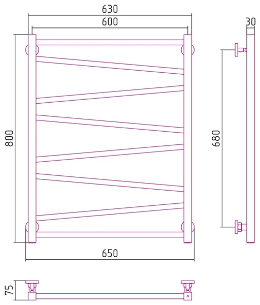 Водяной полотенцесушитель Сирокко 800х600 Сунержа, 00-0253-8060, ХРОМ (без покрытия). Межосевое расстояние: - нижнее подключение X (мм) 600; Внешние габариты (высота х ширина х глубина) (мм) 807х650х74,7; Подключение Нижнее; Материал Нержавеющая сталь AISI 304 L (04X18H10); Рабочее давление от 3 до 15 атм; Давление испытаний 60 атм; Температура теплоносителя до 105°С; Масса (кг) 6.80;
