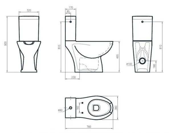 Эргономичный унитаз NOFER с бачком, выполнен из стеклокерамики. Напольная установка, с горизонтальным и вертикальным сливом. С бачком объемом 5 литров.