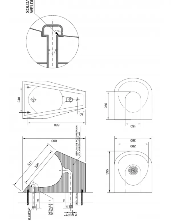 Писсуар из неражвейки настенный для публичных мест предназначен для скрытой системы слива, автоматической или ручной (с кнопкой). Высокая устойчивать от коррозии и ржавчины достигнута благодаря использованию качественной нержавеющей стали AISI 304. Писсуар оснащен специальными винтами для антивандального крепления. Как и весь ассортимент компании NOFER, антивандальная сантехника из нержавеющей стали производится на заводе в городе Барселона, в Испании, конечно же писсар антивандальный 13004 P.S. - не исключение и отвечает всем самым строгим европейским стандартам и требованиям качества.