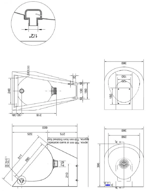 Матовый писсуар из нержавеющей стали выполнен из нержавеющей стали AISI 304, что гарантирует его высокую долговечность и износостойкость. Оттенок нержавейки матовый, также имеется аналогичный писсуар в глянцевом оттенке. В комплекте с данной моделью поставляется только основной крепеж, который предназначен для фиксации верхней части писсуара. Nofer производит аналоги данной модели писсуара с безводным клапаном и антивандальными креплениями.