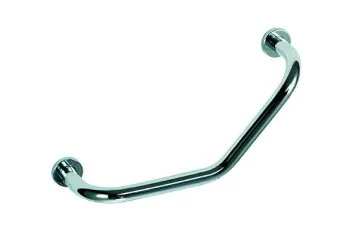 Поручень для ванн загнутый 400 мм из хромированной латуни предназначен для установки в ванных комнат, частных квартир и домов. Диаметр трубы поручня составляет всего 24 мм, и это вполне хорошее значение для нечастого использования, а вот для общественных материалов стоит обратить внимание на поручни диаметром 33 мм.