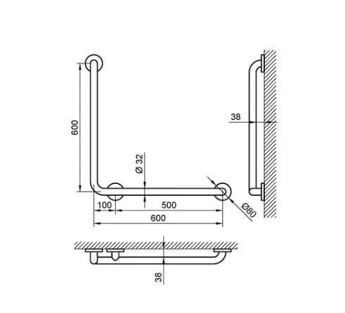 Поручень настенный угловой для людей с огр. Возможностями 600х600 мм глянцевый выполнен из нержавеющей стали глянцевый.