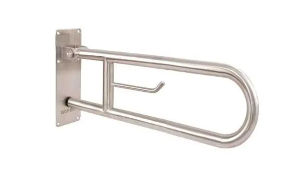 Поручень полукруглый для людей с ограниченными возможностями 600 мм из нержавеющей стали AISI304 матовый. С держателем для бумаги. Полукруглый откидной поручень идеально подойдет для комплектации практически любого санузла для людей с ограниченными возможностями. Максимальная нагрузка на эту модель составляет 120 кго, поэтому производитель настоятельно рекомендует использовать в санузле также и другие пристенные поручни.