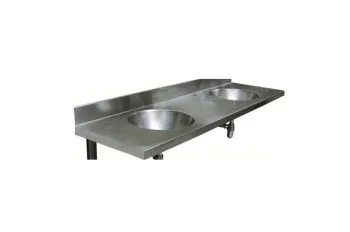 Большая коллективная раковина из нержавеющей стали AISI 304 Представляет из себя большую столешницу настенную с несколькими умывальниками. Кол-во умывальников и длину раковины вы можете регулировать и заказать по вашему желанию.