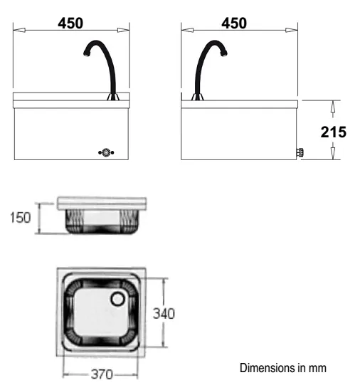 Функциональная раковина из нержавеющей стали AISI 304, что гарантирует долгий срок службы и высокую износостойкость. Корпус имеет матовый оттенок, благодаря чему раковина будет безукоризненно выглядеть даже через несколько лет использованияНастенная раковина выполнена из нержавеющей стали AISI 304, в комплекте имеются кнопка для включения водой коленом, кран с таймером работы (15 сек.), сливной клапан.